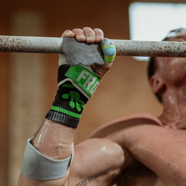 WARNING. Hand Grips come with risk. Any gymnastics based activities creates the possibility of serious injury or even death. This equipment should be used for its intended use only and via the guidelines provided. Before using, know your limitations and the limitations of this specific gear. Grip Lock occurs when a grip wraps excessively around a bar and gets stuck. Ensure you have sized correctly, fitted the wrist support correctly and know how to loosen the grip during different movements to avoid this and always come down with control. Always inspect for damage and test stability before each use and inspect to make sure all parts are secure before each use including the pull up bar or rings being used. If unsure of the proper use of this equipment contact help@froggrips.com prior to use.