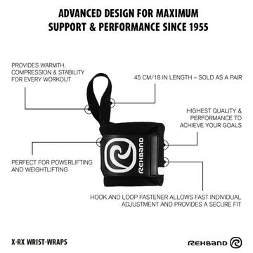 The X-RX Wrist Wrap by Rehband is a rigid yet flexible support that will maximize your lifting potential. The carefully crafted construction provides stability and support throughout the wrist, with the thumb hook ensuring secure and correct placement of the wrap. The 45cm/18in long strap allows a good stretch for individual adjustment, making this product versatile to all sizes and levels of desired tension. The hook and loop fastener further allows for individual adjustment so that the tightness can be adjusted quickly to your needs depending on the exercise.